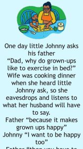 One day little Johnny asks his father “Dad, why do grown-ups like to exercise in bed?”
