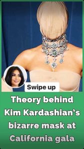 The 44-year-old reality star arrived to this year’s Academy Museum Gala in LA, wearing a skin-toned Maison Margiela gown and a balaclava-style, sock-like mask that completely covered her face, leaving only the faintest hint of her features visible.