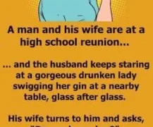 A man and his wife are at a high school reunion… …and the husband keeps staring at a gorgeous drunken lady swigging her gin at...