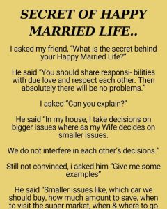 I asked my friend, “What is the secret behind your Happy Married Life?”
