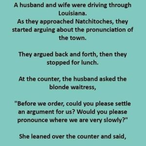 “Before we order, could you please settle an argument for us? Would you please pronounce where we are very slowly?”