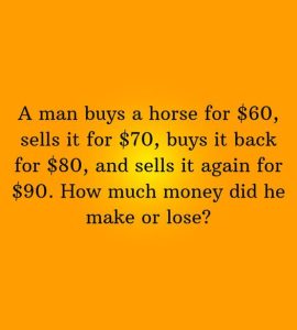 If a man buys a horse for $60, sells it for $70, buys it back for $80,